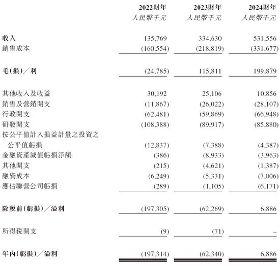 招股书显示,在过去的2022年、2023年和2024年,拓璞数控的营业收入分别为人民币1.36亿、3.35亿和5.32亿元,相应的净利润分别为人民币-1.97亿、-0.62亿和688.6万元,相应的经调整净利润分别为人民币-1.98亿、-0.61亿和1,337.5万元。