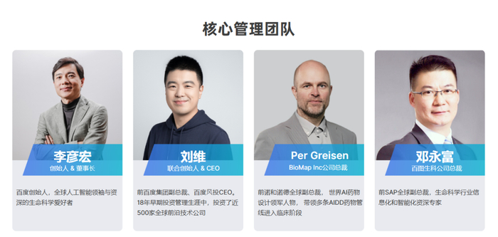 BioMap百图生科由百度创始人李彦宏、原百度风投CEO刘维共同创立,并由原诺和诺德全球副总裁、原SAP全球副总裁等业界高管组成核心团队,在硅谷、北京、苏州、香港设立研发中心,获得超过2亿美元风险投资。