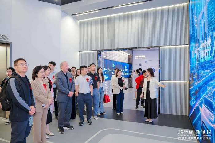 乔迁庆典尾声,与会嘉宾们步入时创意总部大厦,通过参观研发中心、智能制造车间、产品展示厅等场景体验,直观感受总部大厦构建的“标准化、数字化、智能化”高效运营管理方式。
