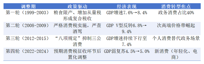 四轮调整呈现从“规模扩张”向“结构升级”的转变,消费驱动力从政务消费转向商务宴请,再向大众消费和年轻群体扩散,品牌竞争核心从渠道推力转向消费者运营能力。