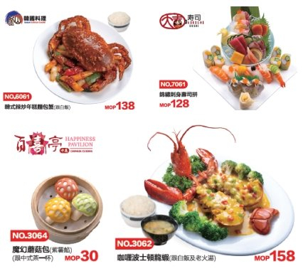 八楼美食广场汇集了各种不同风味的餐厅,从韩式、日式到泰式等东南亚洲料理应有尽有,VIP DAYS贵宾日期间更推出了限定菜式,不到200澳门元即尝波士顿龙虾,用最实惠的价格吃尽各国风味特色美食。