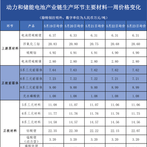 5μm湿法隔膜急速下跌!5月19日-23日锂电产业链主要环节价格走势盘点