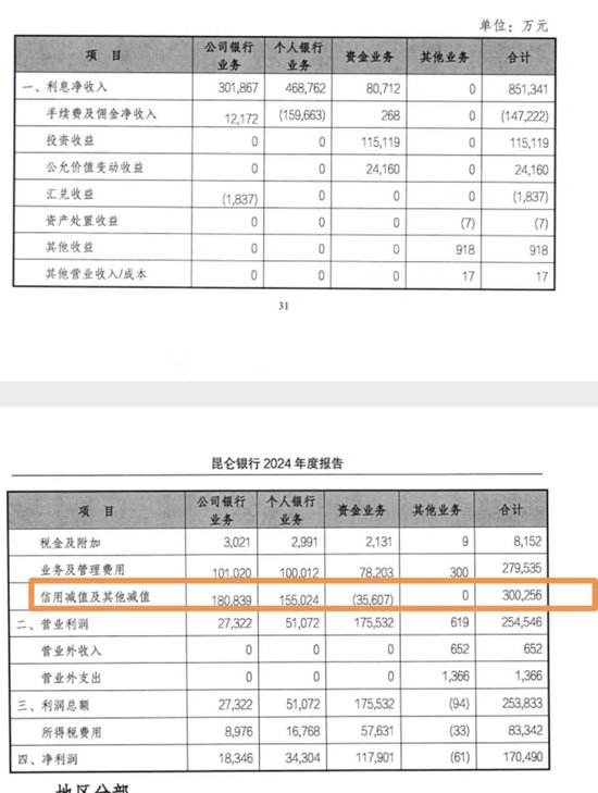 不过仔细分析昆仑银行的净利润构成,大部分还是资金业务贡献的,公司业务1.83亿,个人业务3.43亿,资金业务11.79亿,合计17.05亿。公司和个人业务净利润较少,主要是不良影响比较大。