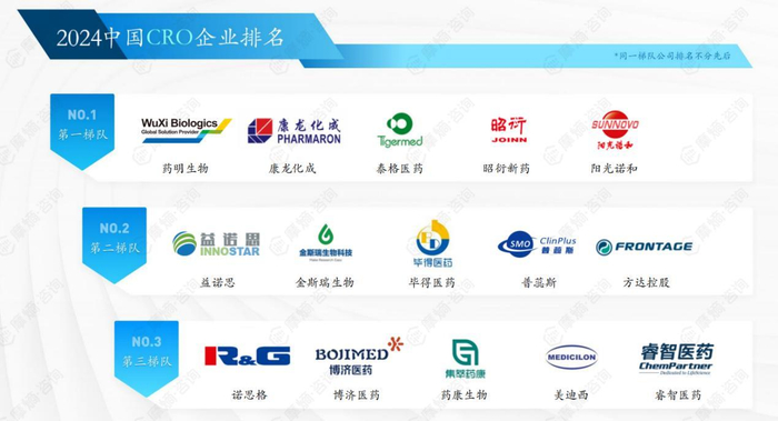 摩熵咨询发布的《2024年医药企业综合实力排行榜》报告中,中国CRO企业排名揭晓,其中: