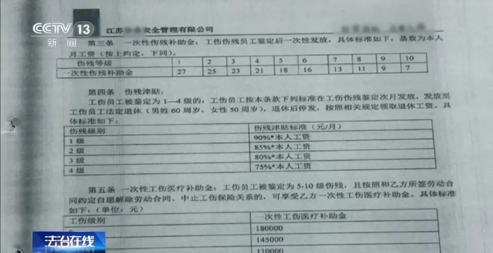 南京市公安局玄武分局经侦大队大队长 吴明森:实际上工人在从事的高危行业,一旦出现了工伤事故之后,对工人的伤害是巨大的,有的工人甚至丧失了劳动力,他们以后的这种生活就没有了经济来源,这个时候工人应当可以获得相对金额较高的赔付金额来保障他以后的生活,但是他应该得到的赔偿没有得到。