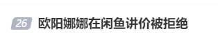 欧阳娜娜在综艺《毛雪汪》中分享了在闲鱼购买吉他时的经历,她说到:“我在闲鱼上买东西,我就好意思讲价一点,因为不用面对面。就是我跟人就说,小刀一下吧。”