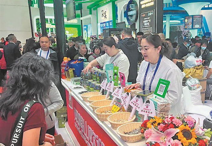 第三十四届哈洽会上,双鸭山市精心挑选一大批“名优特新”产品参展,也引起了各地客商的关注,其中玉米系列制品、黑蜂系列、粮油、白瓜籽等特色产品销售“火爆”;芦苇画、鱼皮工艺制品、北沉香制品等文创产品让观众眼前一亮。