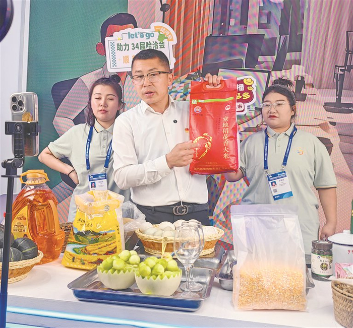 让直播镜头成为农产品连接市场的桥梁。哈洽会期间,在双鸭山展区,一场场别开生面的“云端盛宴”吸引着人们的目光,主播们以“沉浸式逛展”的创新模式,将展区实景与产品故事紧密结合,实时与观众互动,弹幕不停滚动……