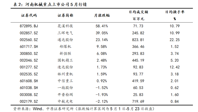 截止到2025年5月23日收盘,沪深两市5月9家河南机械上市公司取得正涨幅。
