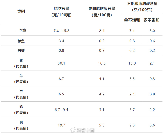 来看看它和其他肉类的脂肪含量对比: