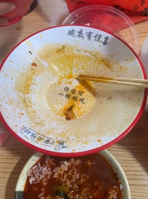发帖人薯薯(化名)向上游新闻记者叙述了当天的事发经过。她介绍,自己和男友在昆明市五华区某曹氏鸭脖店就餐时,发现麻辣烫的碗沿上印有‘碗底有惊喜’五个字。“一开始还兴致冲冲,吃完后甚至特地把汤倒掉想看看碗底的‘惊喜’究竟是什么。当意识到自己和男友的两个碗底均为同一个标语:“你像猪一样能吃” 时,薯薯坦言,这和她预期的“惊喜”差别很大:“本来以为至少会夸赞我们不浪费粮食,光盘了。‘像猪’这句话真的让人很不适。再也不会去吃曹氏了。”