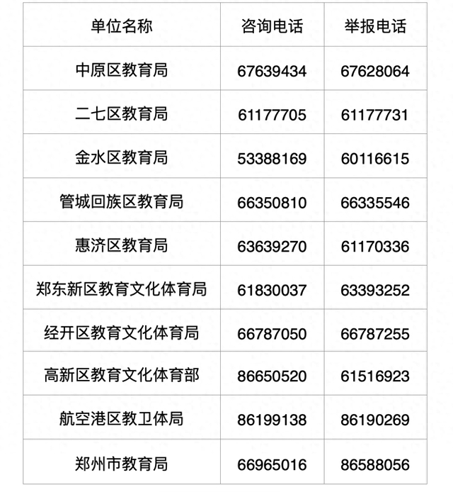 郑州市市区招生咨询电话