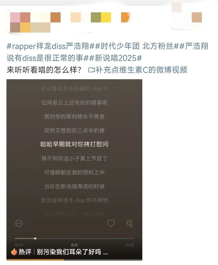 严浩翔官宣成为《新说唱2025》导师后,部分说唱爱好者对偶像跨界担任导师提出专业性质疑,粉丝力挺自家爱豆,更有 rapper 公开发布 diss 内容,将争议推向高潮。