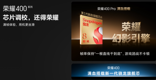 性能方面,荣耀400 Pro搭载第三代骁龙8旗舰移动平台,内置荣耀自研幻影引擎,号称游戏帧率“一根直线干到底”;标准版首发高通骁龙7 Gen4移动平台,CPU性能较前代提升27%。AI功能方面,荣耀AIMAGE影像品牌通过端云协同的AI KERNEL与AI生态系统,实现图像清晰度与长焦摄影的突破。