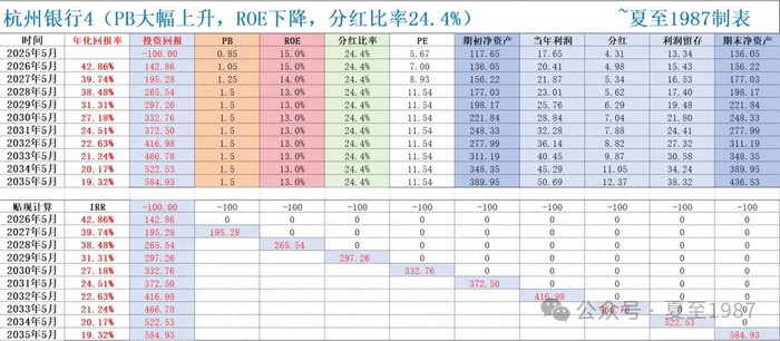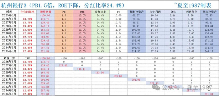 那么我们做个偏悲观的假设,我们预计杭州银行2025年的报表ROE“做”到15%。