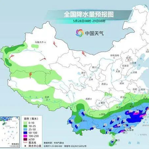 今天(5月28日),南方进入此轮强降雨过程中的最强时段,江南、华南多地将现暴雨,江西、福建、广西、广东都会有大暴雨出现。而华北、东北等地则相反,未来三天天气持续晴热,东北部分地区的最高气温或在今年首次达到30°C以上。