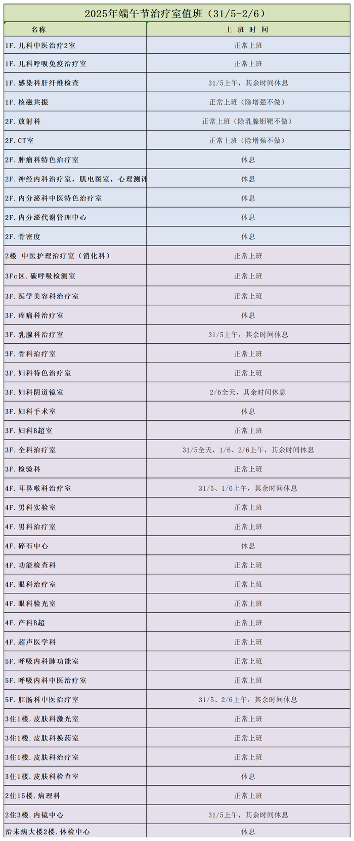 现将成都市第四人民医院2025年端午期间门诊工作安排通知如下: