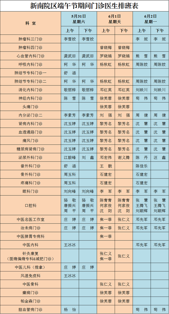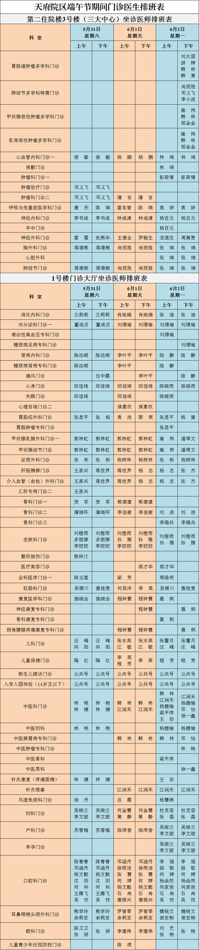 2. 第三门诊部、第五门诊部5月31日至6月2日(周六至周一)内科开诊。
