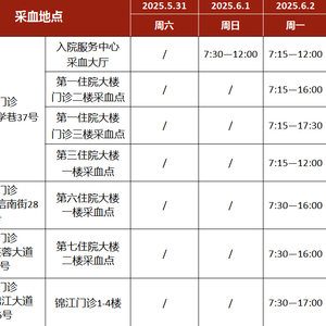 2025年5月31日(星期六)华西坝院区(包括门诊药房、采血室及相关检查科室)停诊1天。