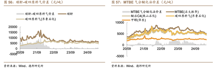 本周化工品价差跌幅前十名为:丙烯酸丁酯-丙烯酸-正丁醇价差(-480元/吨)、MTBE气分醚化法价差(-444元/吨)、R410a-R125-R32价差(-250元/吨)、复合肥价差(-20元/吨)、国际柴油市场价-布伦特原油价差(-5美元/桶)、EVA-乙烯-醋酸乙烯价差(-1390元/吨)、顺酐-碳四原料气价差(-194元/吨)、尼龙6-己内酰胺价差(右轴)(-253元/吨)、醋酐-醋酸价差(-269元/吨)、PX-石脑油价差(-393元/吨)。