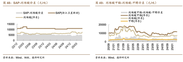 丙烯酸:本周丙烯酸(华东)价格7550元/吨,环比+9.4%。供应端:目前,场内丙烯酸厂家装置情况如下:山东恒正、沈阳蜡化、中海油惠州、江苏三木、泰兴昇科、万华化学、浙江卫星、齐翔腾达、山东宏信、山东诺尔和山东开泰的部分丙烯酸装置正在停工检修中。需求端:本周国内胶带母卷行业开工率较上周略有下降,维持在5成附近,企业开工负荷波动有限。下游整体以刚需散单采购为主,市场交投气氛一般。目前透明母卷市场排产周期预计在3-10天左右,厂家按需生产。