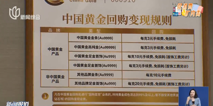 门店内设有回购处,有人特意来此购买黄金,随后以实时基础金价减三元手续费的价格,直接在店内出售。