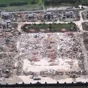 28日上午,当地村民介绍,27日半夜,几十辆挖掘机已进场,28日天没亮就在作业,目前从高处看“英之园”已基本清拆完毕,只剩四周围墙。由于施工,当地村民也已无法随意进入。