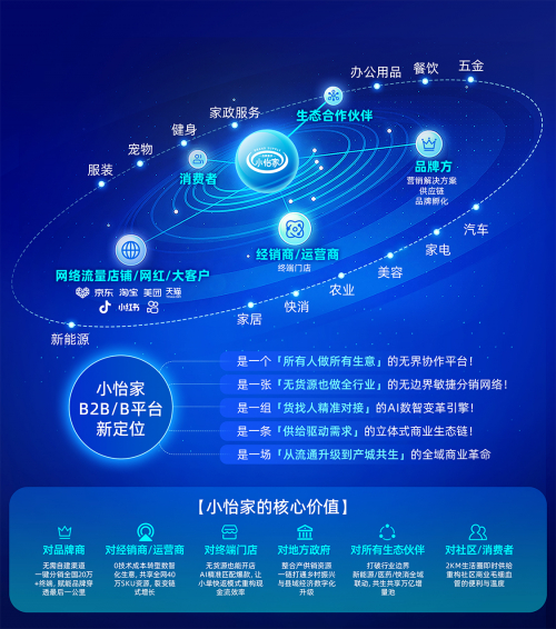 Q1:传统零售普遍面临库存与客流压力,小怡家为何选择“全域分销”模式?背后有哪些底层逻辑?罗杰(小怡家总裁): “传统零售的症结在于高库存占用资金、低坪效难聚客流,而全域分销的本质是通过供应链协同与场景数字化,实现轻资产运营+高价值触达。罗杰强调,小怡家以怡亚通覆盖380城的实体网络为基座,整合20万SKU的供应链资源,首创“虚拟货架+社区服务”双引擎模式。终端门店无需囤货即可接入全品类商品,将90%的物理空间转化为会员体验区,坪效提升超40%。