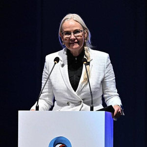 佩特拉·索林在多哈世乒赛开幕式上。