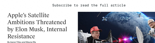 外媒:马斯克携SpaceX入局 欲以50亿美元预付款截胡苹果卫星合作计划