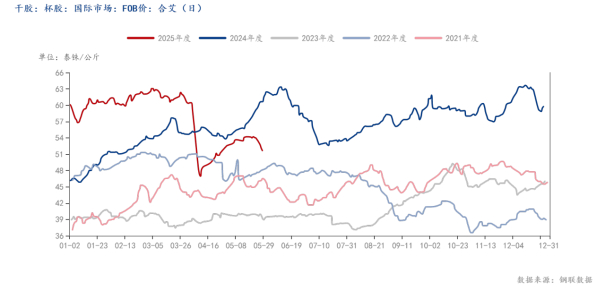 (1)供应方面,泰国杯胶价格今日报价51.6泰铢/公斤,环比回落0.96%,成本支撑边际下滑,但价格仍处于较高水平,拉动胶农割胶积极性,未来供应预期维持偏宽松。消息面,近期中泰两国磋商橡胶零关税,若协议有进展,国内供应压力或将进一步增加。