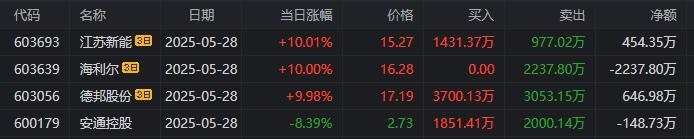 在龙虎榜中,涉及沪股通专用席位的个股有1只,安通控股的沪股通专用席位净卖出额最大,净卖出148.73万元。