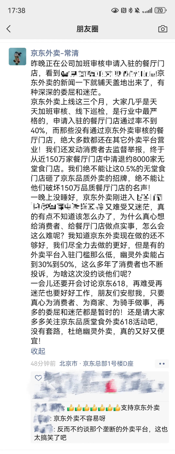 这一举措也受到了消费者的认可,很多过去因食品安全问题不敢点外卖的用户,因品质定位而选择京东。用户笑言:无论是否在京东点外卖,都要在京东“查”外卖。不少用户在社交媒体分享自己的心得,点外卖前先上京东看看该门店是否上线,确保是京东审核通过的门店,再比价下单。