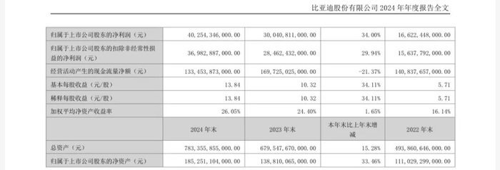 据比亚迪发布2024年财报,其全年实现营收7771.02亿元,成立以来首次营收突破7000亿元。归属于上市公司股东的净利润为402.54亿元,同比增长34%;扣非后净利润为369.83亿元,同比增长29.94% 。