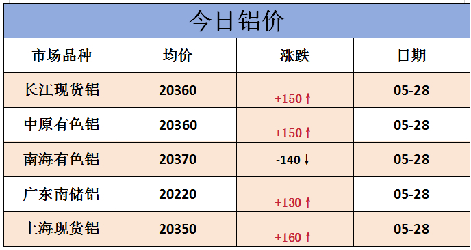 涨!今日铝价!铝锭价格 涨!氧化铝价格 涨!!(2025.05.28)