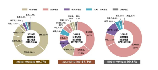 在2019年时,日本的原油对外依存度达99.7%,液化天然气对外依存度达97.7%,煤炭的对外依存度达99.5%。这三者又恰巧是日本发电的主力来源,因此日本电价十分昂贵。