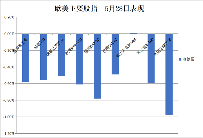 欧美股市:道指跌0.58%,标普500指数跌0.56%,纳斯达克跌0.51%。欧洲STOXX 600指数收跌0.61%。