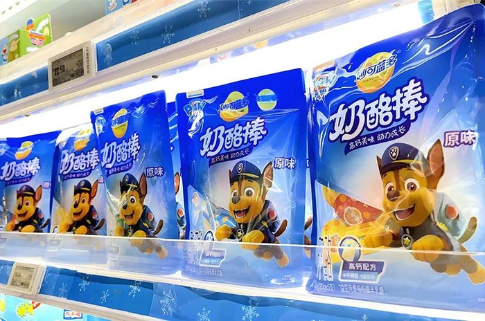 而这样一个竞争较小、巨头又尚未注视到的赛道,成为了妙可蓝多起飞的原点。2018年,妙可蓝多推出第一代奶酪棒,一开始便通过联名营销和广泛渠道铺设成为现象级单品。在2019年前后,一首由《两只老虎》改编而来的妙可蓝多广告,开始占领分众的屏幕,并伴随着魔性洗脑的声音,响彻大江南北。此后,妙可蓝多更是成为分众和央视的常客。凭借着高举高打的营销策略,妙可蓝多一度成为儿童奶酪的代名词。