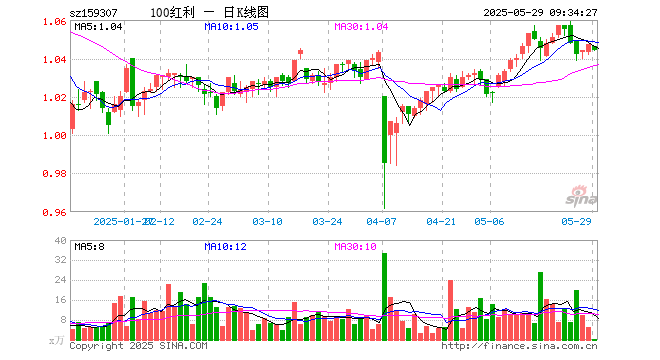 5月29日,红利低波100ETF(159307)开盘跌0.10%,报1.046元。红利低波100ETF(159307)重仓股方面,冀中能源开盘涨0.00%,大秦铁路涨0.15%,厦门国贸涨0.00%,北元集团涨0.00%,养元饮品跌0.52%,雅戈尔涨0.27%,嘉化能源涨0.49%,双汇发展跌0.29%,中国石化涨0.00%,陕西煤业涨0.10%。