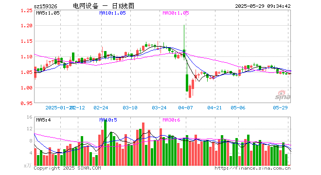 电网设备ETF(159326)开盘涨0.00%,重仓股国电南瑞涨0.32%,特变电工涨0.00%