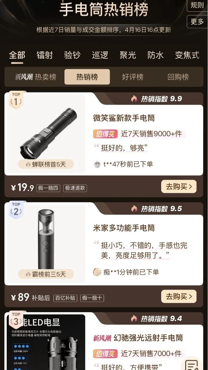 ▲天猫榜单:手电筒热销榜