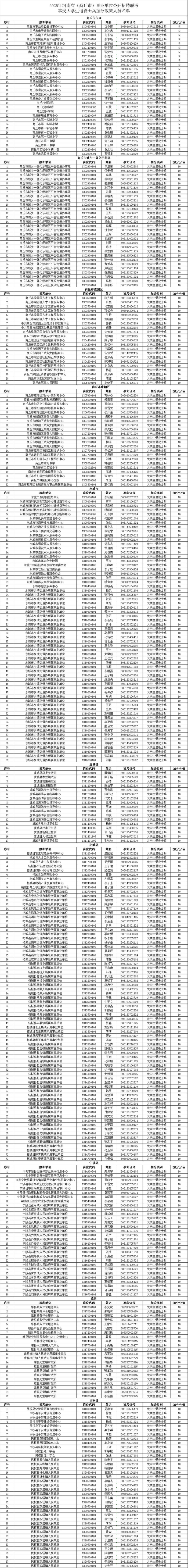 2025年河南省(商丘市)事业单位公开招聘联考享受大学生退役士兵加分政策人员公示