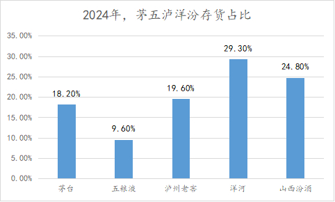 但结合库存看,洋河控货更像是不得已而为之。2024年,洋河存货占资产比重达到29.3%,在茅五泸洋汾中最高。