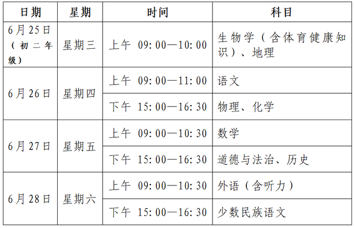 原标题:2025年巴彦淖尔中考时间安排、考试科目、各科分值明确