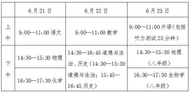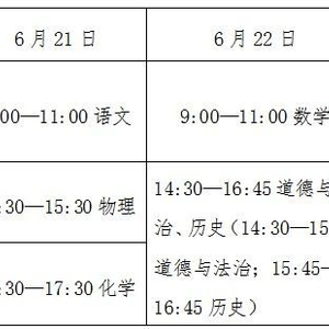 (1)考试科目。语文120分、数学120分、外语120分(其中听力测试30分,笔试90分)、道德与法治60分(含民族团结进步教育内容)、历史60分、物理68分(其中书面笔试60分,实验操作技能考试8分)、化学66分(其中书面笔试60分,实验操作技能考试6分)。