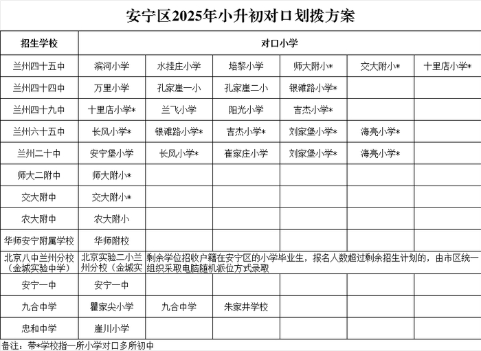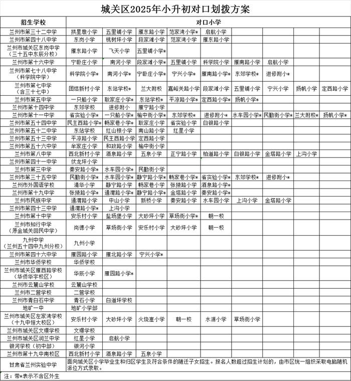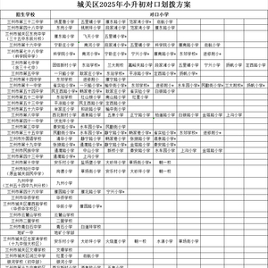 2025年兰州市城市四区小升初对口划拨方案