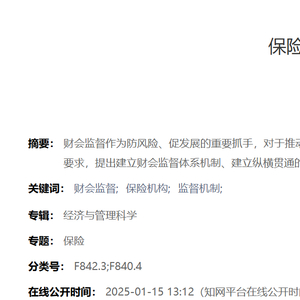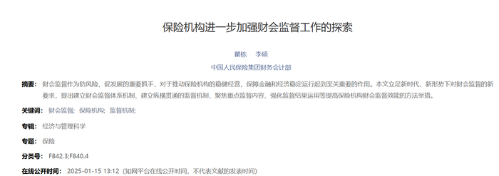 2024年11月,与李硕在《财务与会计》期刊发表《保险机构进一步加强财会监督工作的探索》,提出构建“纵横贯通”的财会监督机制。