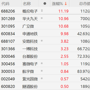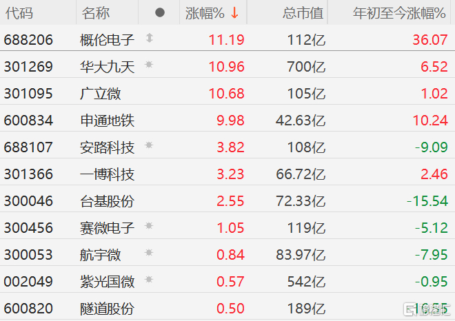今日,EDA概念股集体走强,概伦电子涨超11%,华大九天、广立微涨超10%,申通地铁10CM涨停,一博科技、安路科技涨超3%,台基股份涨超2%。