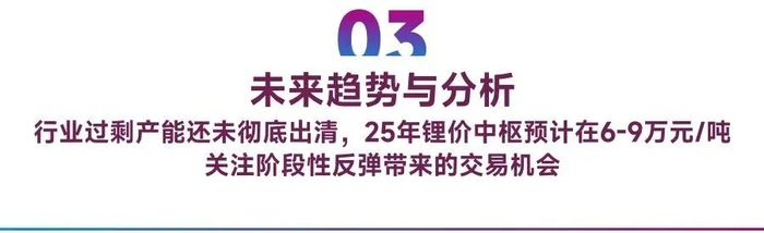 所以短期来看,碳酸锂在25年将延续供应过剩的格局,而高企的库存又将对现货市场产生较大压力,反映供需过剩的矛盾,整体趋势仍在震荡寻底的过程中。综合来看,2025年碳酸锂需求预期向好,但供过于求局面难以扭转,价格中枢预计在60000~90000元/吨,关注阶段性反弹带来的交易机会。