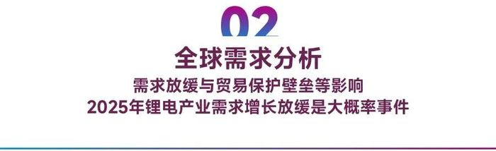 综上所述,由于特朗普上台对华加征关税,欧洲反补贴调查,贸易保护主义抬头影响全球电动化进程叠加国内目前新能源汽车内销渗透率已经超过50%,2025年动力电池主导的锂电产业需求增长趋势放缓是大概率事件。